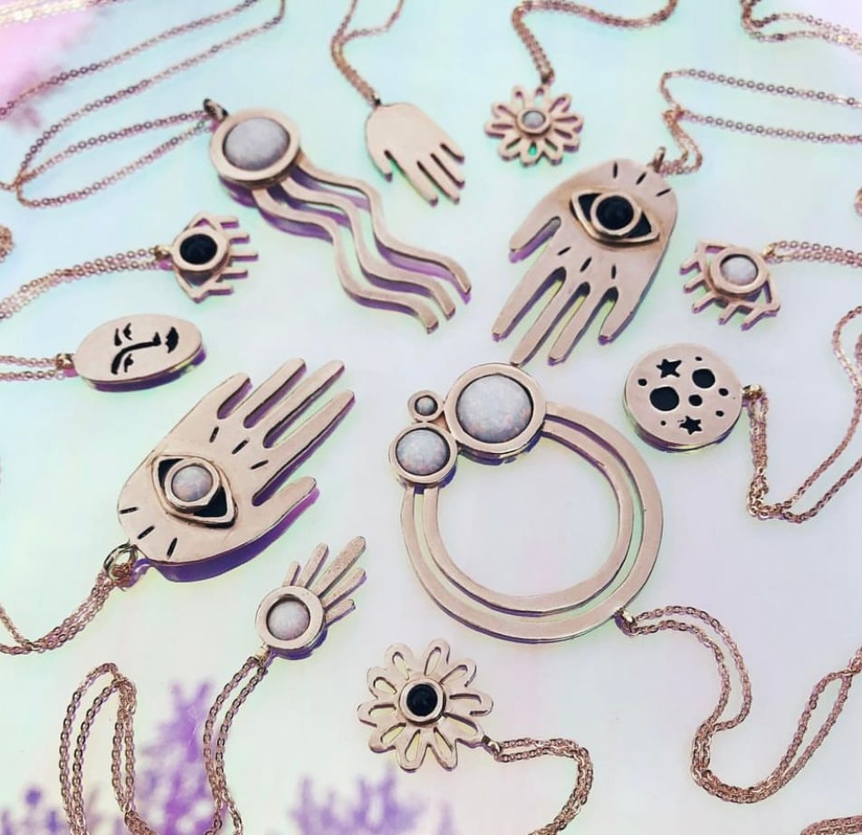 Hand Eye Necklace with Opal