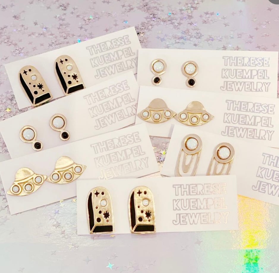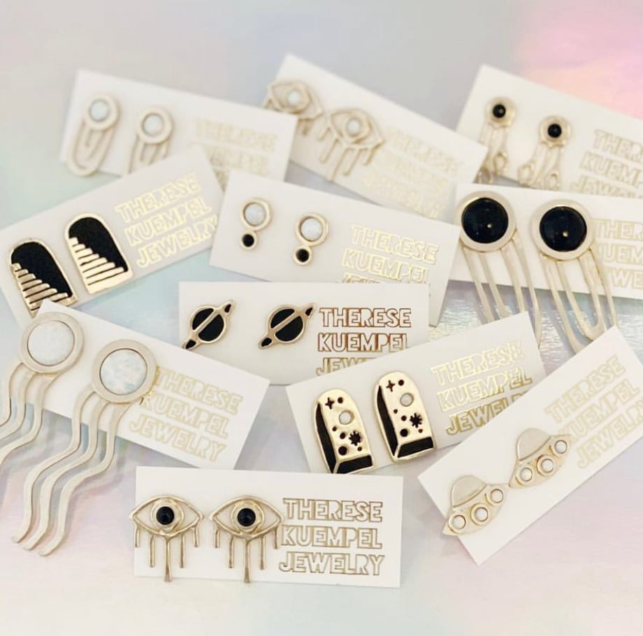 These unique earrings were handmade using traditional metalsmithing techniques and the lost wax casting process. Handmade in Chicago by Therese Kuempel.